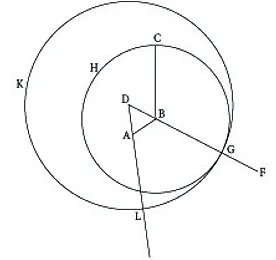 유클리드 기본모음 제안 2. 한 직선을 주어진 점을 끝점이 되게 옮기기// 제안 2. 지정한 직선과 길이가 같고 지정한 점에서 끝나는 직선을 그립니다. 주어진 점을 A라고 하고, 주어진 직선을 BC라고 합니다. 점 A를 끝점으로 하여 주어진 직선 BC와 동일한 길이의 직선을 그립니다. 직선 AB로 점 A를 점 B에 연결하고 그 위에 정삼각 DAB를 그립니다(제안 1) 직선 DA 및 DB를 확장하여 직선 AE 및 BF를 작성합니다. 중심 B와 반지름 BC로 원 CGH를 그리고 중심 D와 반지름 DG로 원 GKL을 그립니다. 점 B는 CGH의 원래 중심이므로 직선 BC는 직선 BG와 같은 길이입니다. 점 D가 원 GKL의 중심이므로 직선 DL의 길이는 직선 DG와 같습니다. 그리고 여기서 직선 DA와 직선 DB는 길이가 같고, 나머지 직선 AL과 BG는 길이가 같습니다. 그러나, .. 더보기 이전 1 ··· 45 46 47 48 49 50 다음